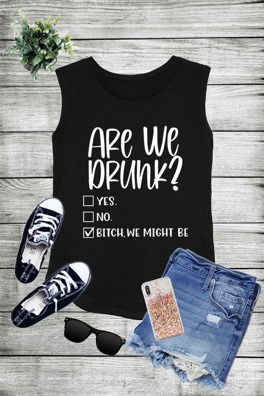 ARE WE DRUNK? Yes No B**** We Might Be, Graphic Screen Printed Sleeveless Tank