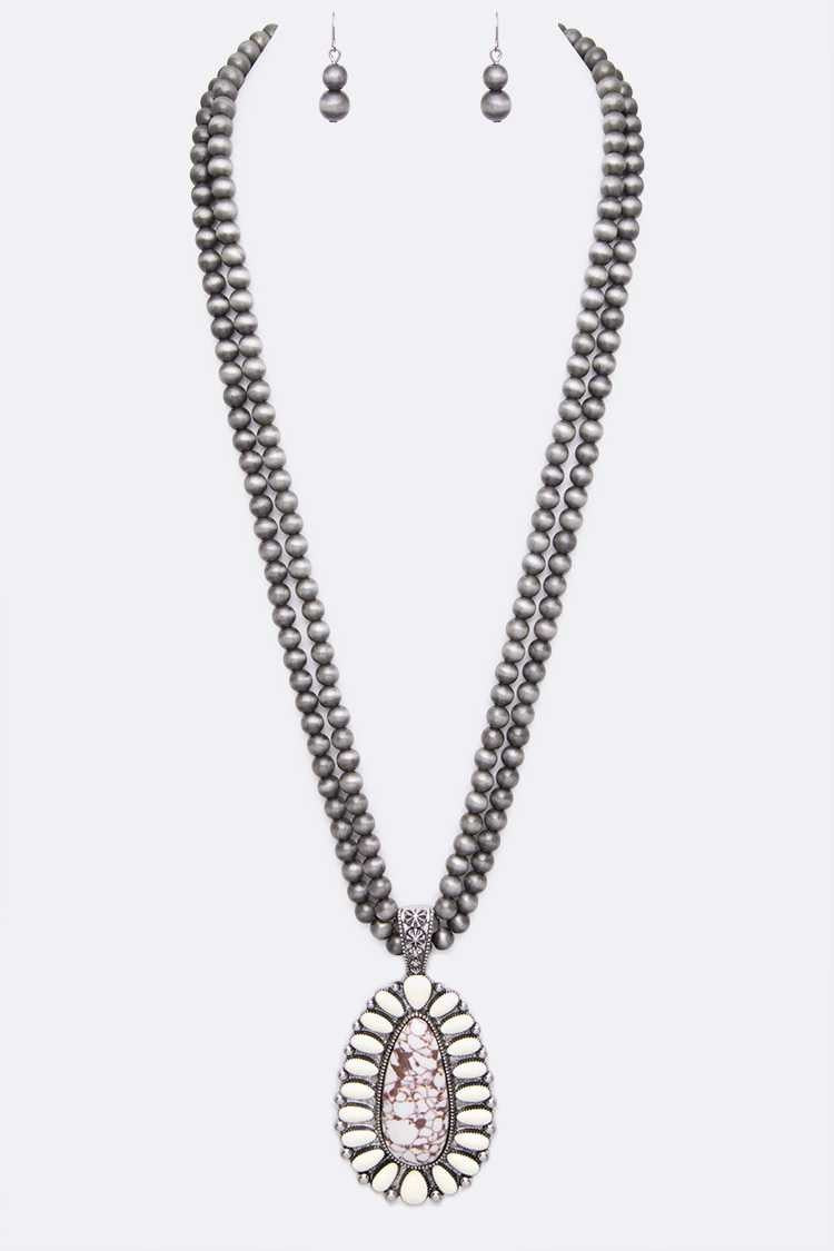 Large Oval Stone Pendant Navajo Beaded Long Necklace