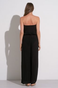 Ready for Summer Black Linen Strapless Jumper with High Leg Slits
